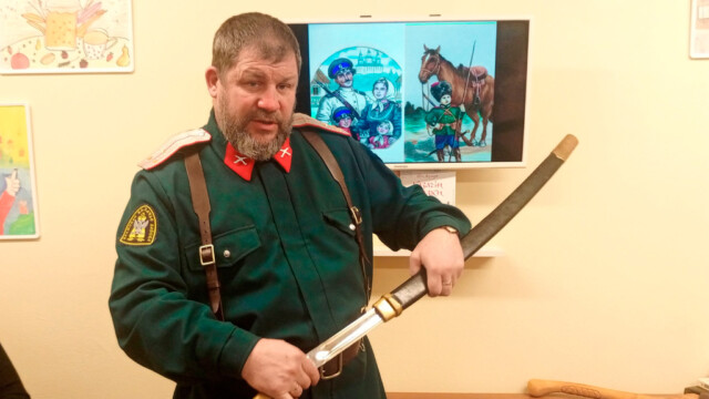 А ещё с удовольствием рассматривали оружие казаков — артиллерийскую шашку, саблю, топор, изучали, что такое «гусёк», «тимляк» и «бебут».
